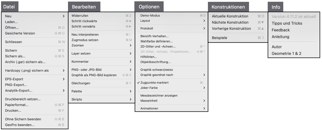 GeoPro-Dateien (.g2d, .g3d, .gar) können in der MacOS-Version durch Doppelklick geöffnet werden. In einem GeoPro-Archiv (.gar) können bis zu neun GeoPro-Dateien gespeichert sein.